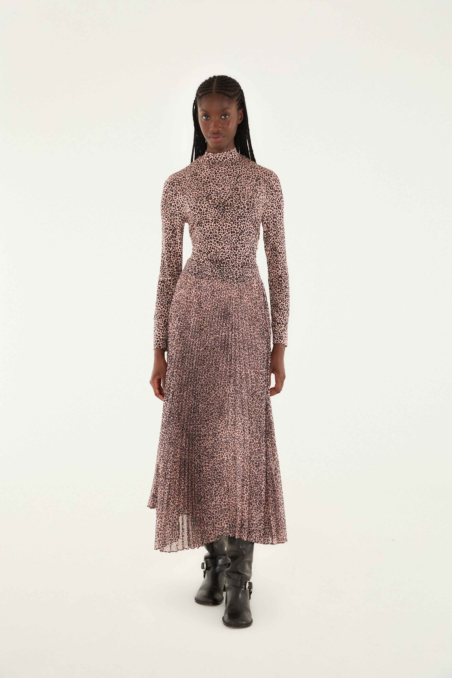 Embrace effortless charm with the Pink Baby Leopard Jersey Blouse from FARM Rio. This top features a high neckline that gently frames the face, while its sleek silhouette is enhanced by subtle ruching along the sides, adding a playful texture. The delicate pink base is alive with a lively baby leopard print, blending soft hues and bold spots in perfect harmony. A spirited statement woven with warmth and ease.