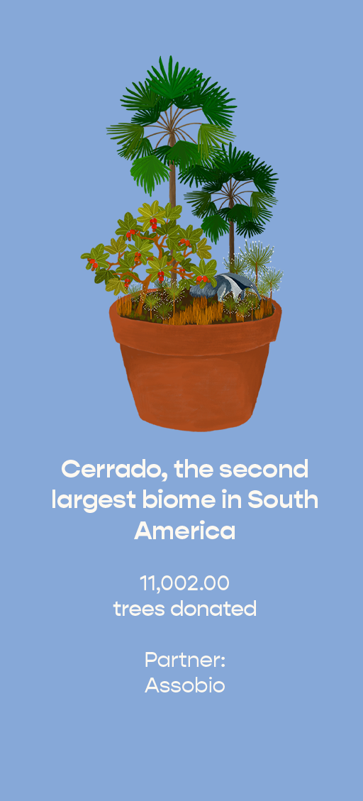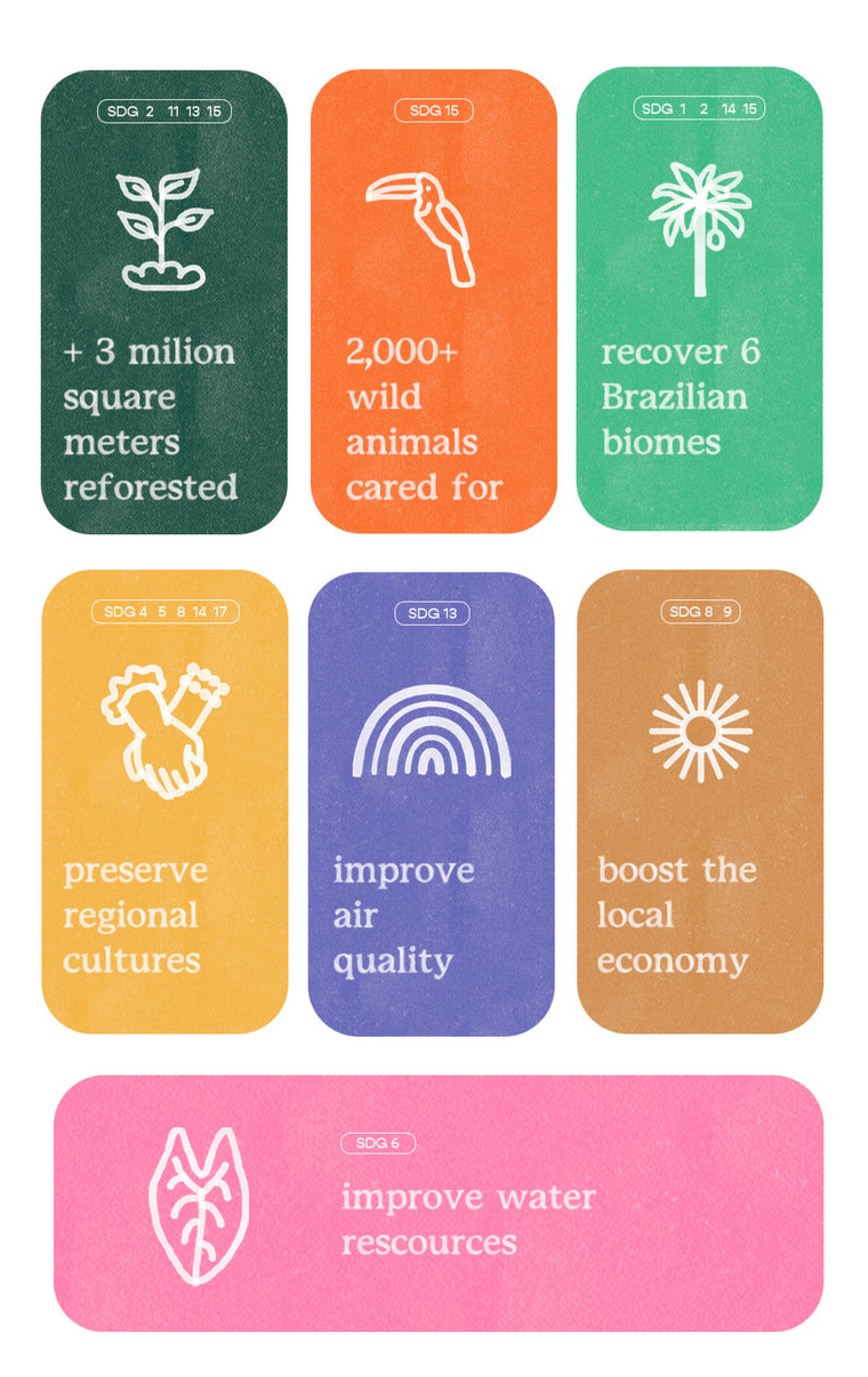 We started planting trees a few years ago in Brasil, our home country, in the Atlantic Forest and the Amazon Rainforest with our partners SOS Mata Atlântica Foundation and the Institute for Conservation and Sustainable Development of the Amazon - IDESAM, respectively. After that, we've also partnered with One Tree Planted, Instituto Curicaca, Instituto Homem Pantaneiro, and Iniciativa Verde to scale these initiatives even more, embracing all the other biomes. Together, we work to regenerate degraded soils through the planting of native species, boost local culture and economies, neutralize emissions, and recover our important biodiversity while protecting the environment. We help show that agriculture and the forest can coexist in harmony through plantings made in agroforestry systems.