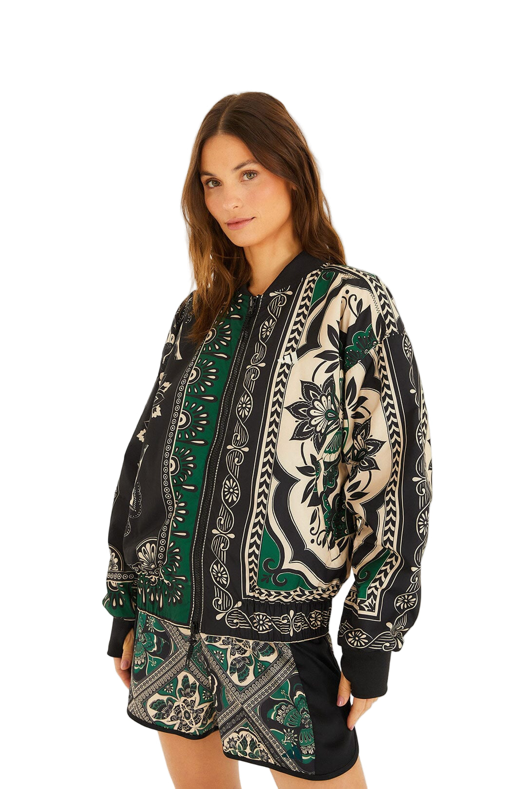 Wrap yourself in the playful spirit of FARM Rio with the Borboho Scarves Black Adidas Jacket. This jacket delights with its bold black canvas, accented by vibrant butterfly-inspired patterns that dance across the sleeves and back. The relaxed silhouette combines sporty edge with a touch of whimsy, making each movement feel effortless and joyful. A perfect harmony of Brazilian flair and modern cool, it’s outerwear that invites adventure with every wear.