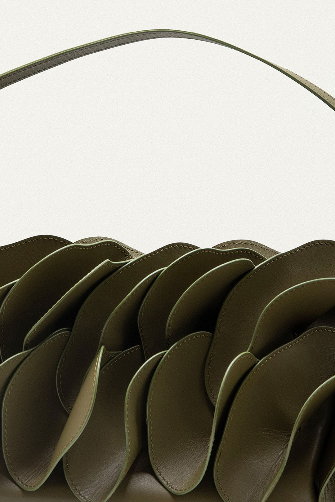 Embrace playful elegance with the Green Leather Shoulder Flower Bag from FARM Rio. Crafted from smooth olive green leather, its standout feature is the captivating three-dimensional petal silhouette that wraps around the bag, evoking the delicate bloom of a flower. The structured yet soft form carries warmth and character, while the single shoulder strap adds ease and charm. This unique design blends nature-inspired artistry with modern style for a truly enchanting accessory.